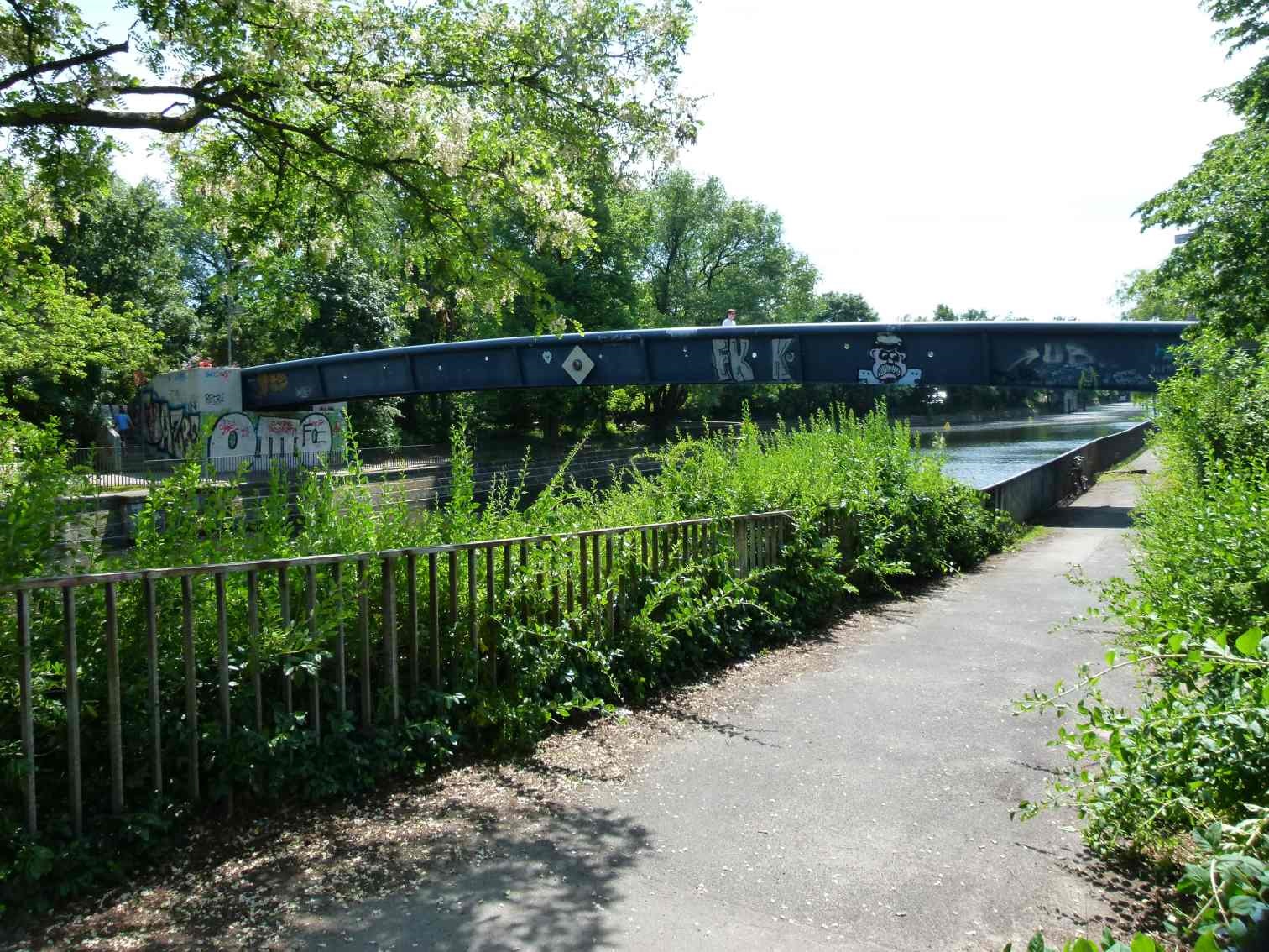 Der Ernst-Heilmann-Steg in Berlin-Kreuzberg überführt einen Fußweg über den Landwehrkanal. Die 1980 erbaute Stahlbrücke mit einer Gehwegbreite von ca. 2,50 m hat einen offenen Trogquerschnitt. Die Brücke weist eine ausgeprägte Anfälligkeit gegenüber fußgängerinduzierten Schwingungen auf. Besonders leicht lässt sich die Brücke zu Torsionsschwingungen anregen.