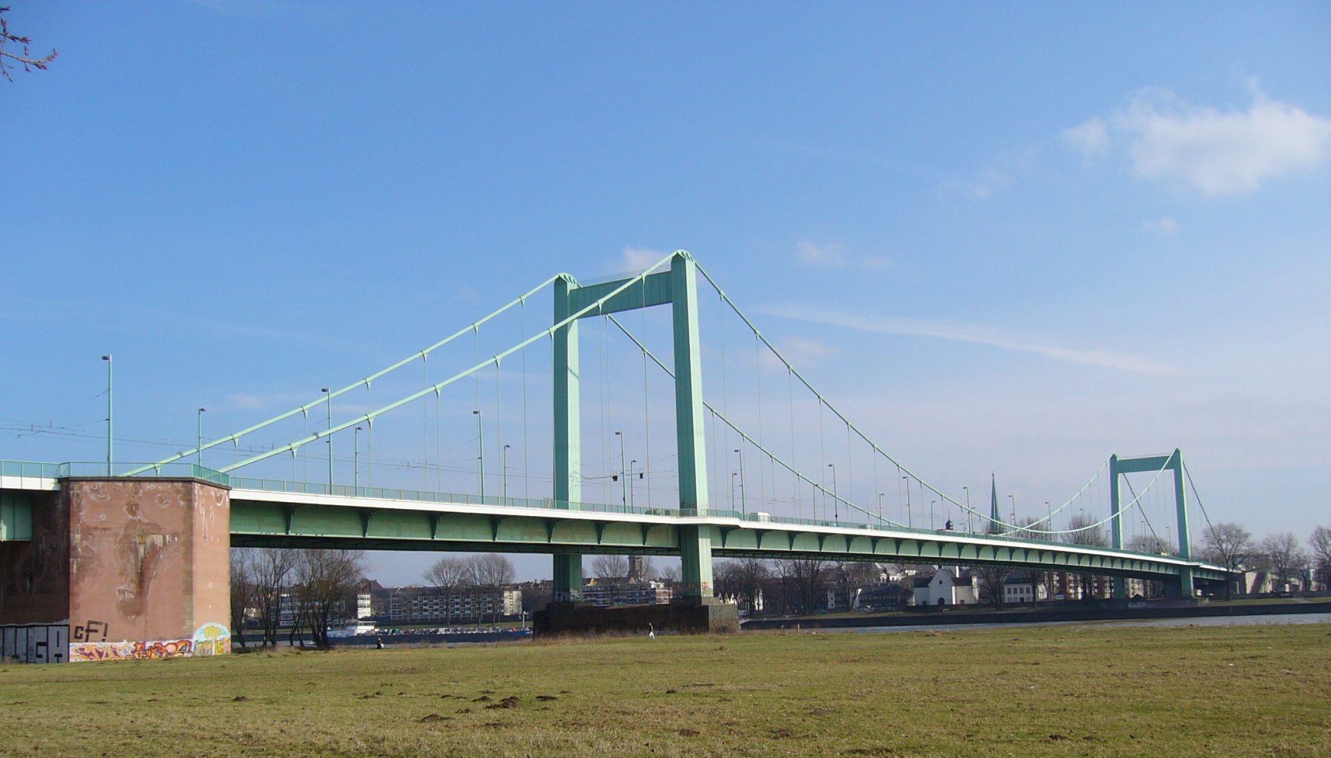 Die Mülheimer Brücke über den Rhein in Köln ist eine echte Hängebrücke mit einer Stützweite von 315 m. Die Brücke überführt 2 Gleise der Stadtbahn und 4 Fahrspuren. Im Auftrag von LAP wurde im Zeitraum Herbst 2013 bis Frühjahr 2014 ein Bauwerksmonitoring durchgeführt. Weiterhin wurde ein Belastungsversuch mit 2 Straßenbahnen und 2 Kranfahrzeugen messtechnisch begleitet. Ziel der Messungen und Auswertungen war die Erarbeitung eines bauwerksspezifischen Ermüdungslastmodells.