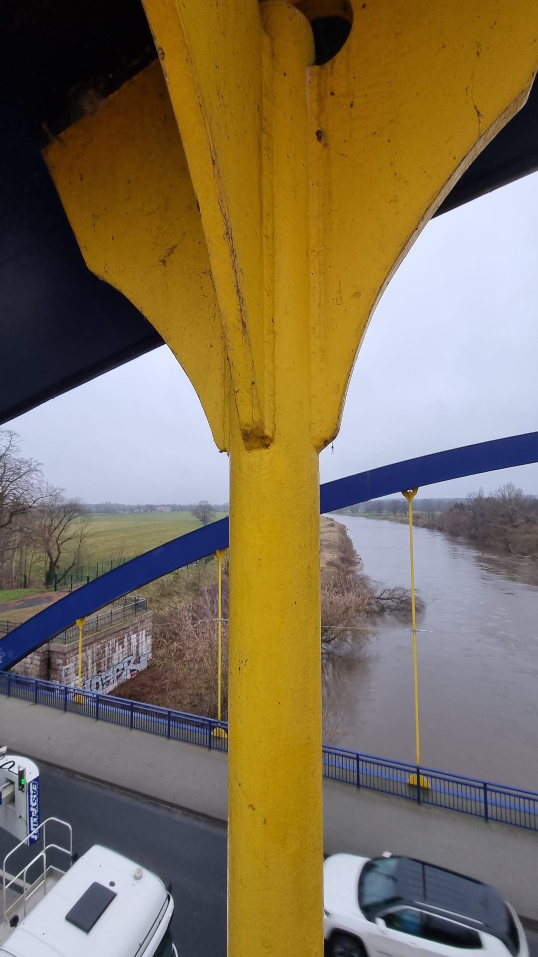 Die Muldebrücke Bad Düben ist eine stählerne Stabbogenbrücke mit Rundstahlhängern und einer orthotropen Fahrbahnplatte. Sie überspannt die Mulde mit einer Stützweite von 70,2 m im Zuge der B 2 in der Ortslage Bad Düben bei Leipzig. Die statische Nachrechnung der Brücke nach Stufe 1 und 2 der Nachrechnungsrichtlinie hat deutliche Defizite in den Ermüdungsnachweisen mehrerer Bauteile ergeben. Deshalb wurde ein Bauwerksmonitoring durchgeführt, mit dem Ziel insbesondere die real auftretenden Ermüdungsbeanspruchungen und die Verkehrsbelastung zu messen. Die Ergebnisse des Monitorings dienen dazu, einen messdatengestützten Ermüdungsnachweis nach Stufe 3 der Nachrechnungsrichtlinie zu erbringen.
